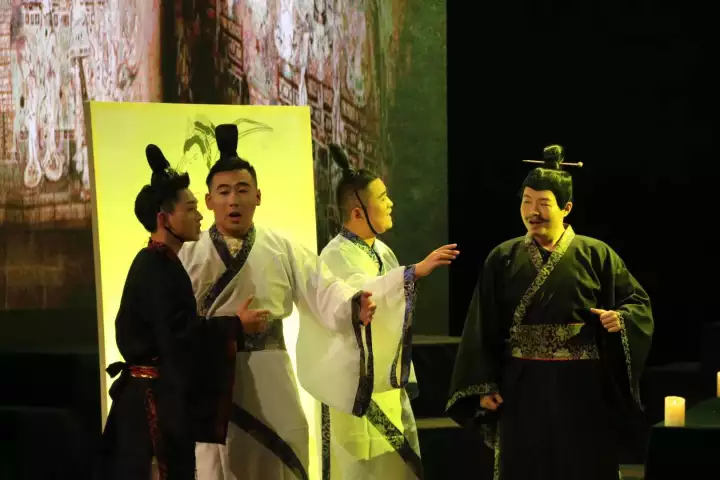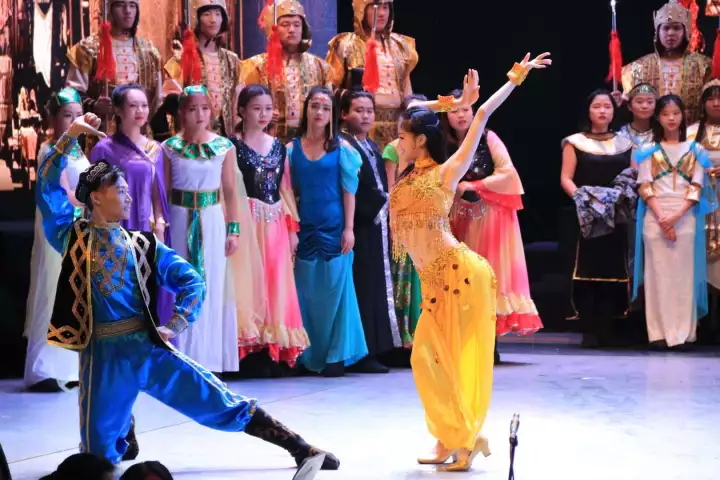 师生在北京国家大剧院首演第一、三幕,在海南省歌舞剧院复演之后,此次在我校大剧院四幕完整版的首演。值得一提的是,三场演出的音乐,尝试采用了不同的伴奏形式,有西洋管弦乐队版,中国民族乐队版,51吃瓜