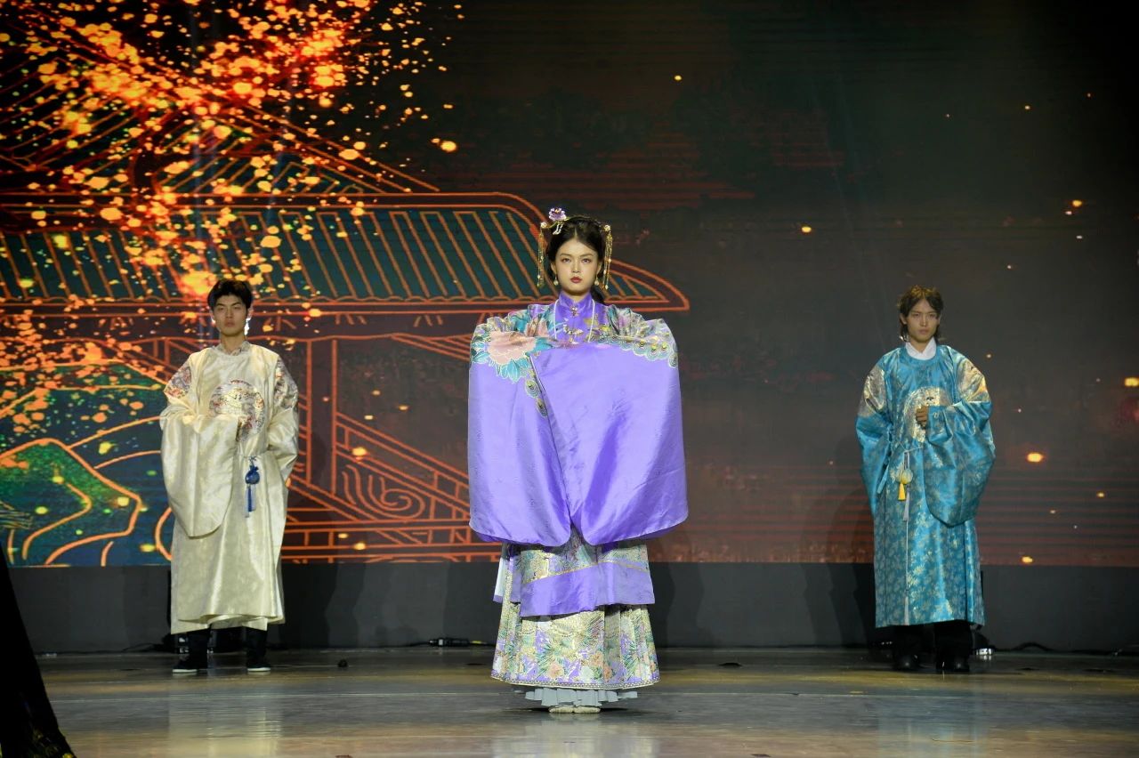 纺织服装学院设计与表演专业学生带来的《盛世流光 锦绣霓裳》尽显古风韵味。汉服不仅是中华民族的传统服饰,更是中华民族悠久历史和灿烂文化的缩影。