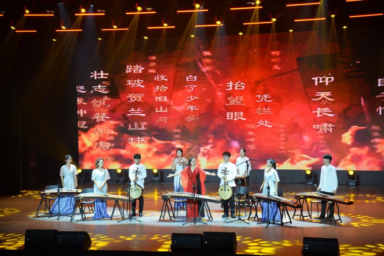筝阮乐团带来的《满江红》。古筝和阮的旋律合奏的音调高昂悲壮感受中华民族深厚的文化底蕴,凛凛有生气焉。