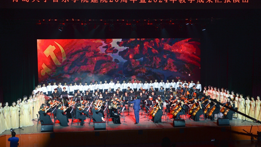 剧院精彩上演。校领导胡钦晓、李建波、吴世珍,青岛市委宣传部、市教育局、市文联、市残联、青岛广播电视台、青岛演艺集团、市南区委宣传部、崂山区文联、青岛音协、青岛舞协等单位相关负责同志,学校相关职能部门、部分学院负责同志,曾经在音乐学院工作过的教师,校友及共建单位代表等共700余人观看演出。