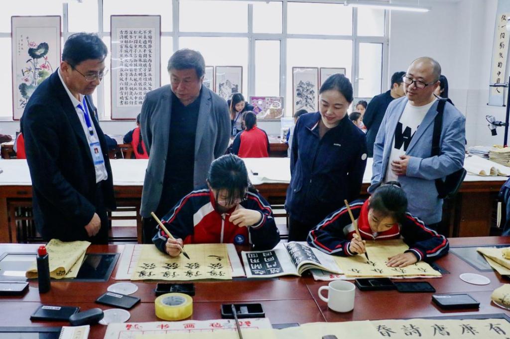 与五莲县教体局签订了“美育浸润行动计划”合作协议,双方将共同努力,深入合作与交流。与会人员还实地参观了实验小学校园,观看实验小学丰富多彩的社团开展情况,了解了当地美育工作实际开展的方法与成效。